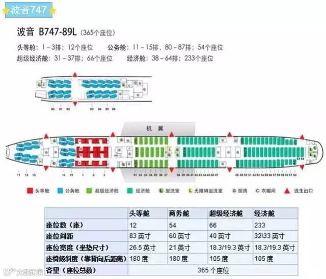 2.上舱:80排开始(如波音747-89L、747-400);