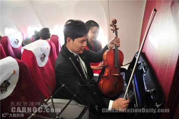 民航资源网2016年1月31日消息:猴年春节来临之际,越来越多的人开始踏上回家之旅。1月29日,在祥鹏航空8L9879昆明=杭州新春音乐主题航班上,空乘身着中国红礼服、小提琴乐队万米高空现场演奏,一场年味十足,颇具创意的高空音乐现场演奏会,为所有回家的旅人送上了新春祝福。