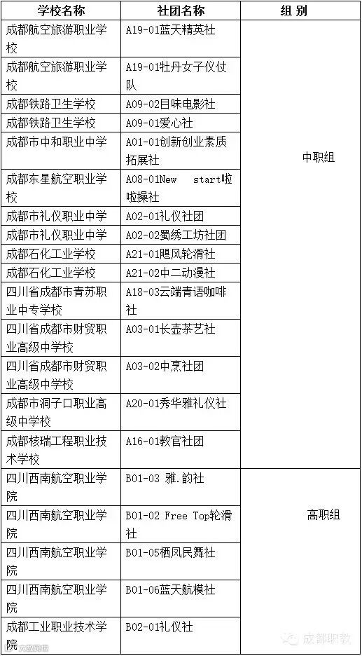 成都市首届中高职学生“最强社团”新媒体评选晋级决赛名单
