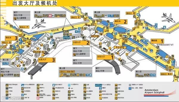 如果你是从史基浦机场转机前往其他申根国家,则必须在机场1、2号候机大厅间的海关办理护照检查,从1号候机大厅登机。