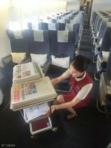 舱门口的报纸也不是别人放的。都是我们精心为旅客挑选和准备的,来来来,看报,看报咯~