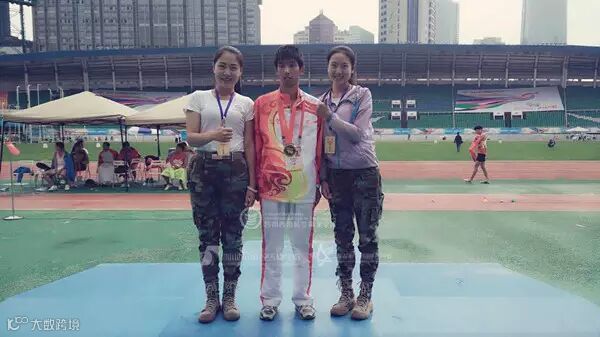 西航学子冯思璐、李璐与FT47级三级跳冠军刘辅梁合影,刘辅梁多次参加残奥会并夺冠,传递青春正