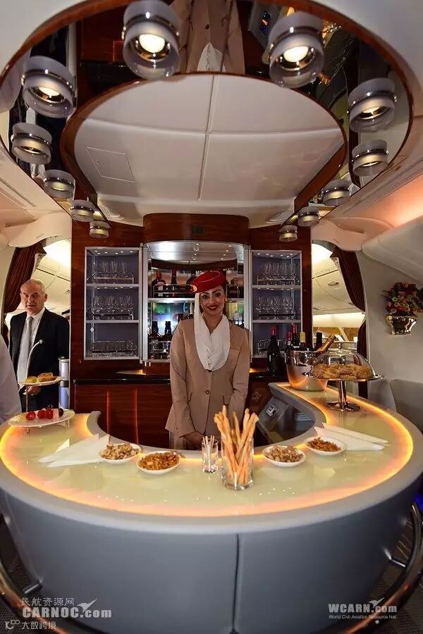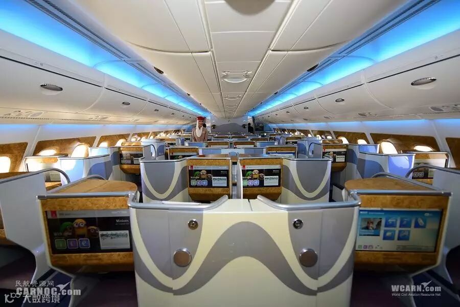 阿联酋航空在本次迪拜航展上展示了世界首架两舱布局空客A380,也是阿联酋航空第68架A380,这架飞机是直接从空客汉堡工厂调机迪拜参加本次航展。