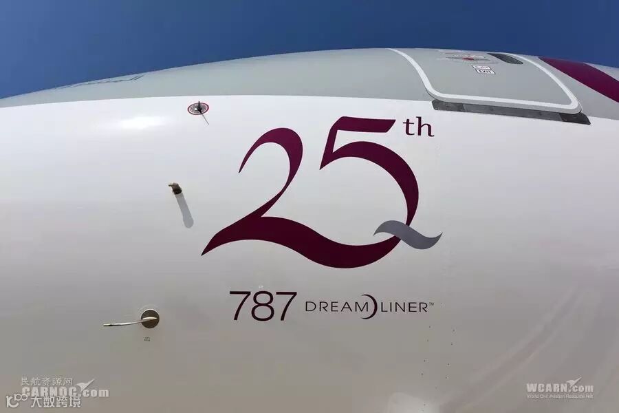 卡塔尔航空本月5日刚接收的第25架波音787-8客机在本次迪拜航展进行了展示。