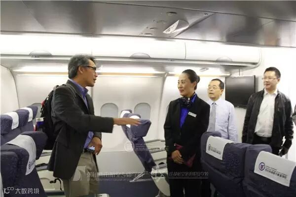 长老会学院国际项目部主任Mr Viet Ha一行人在学院领导陪同下参观校园(图为A330服务训练舱)