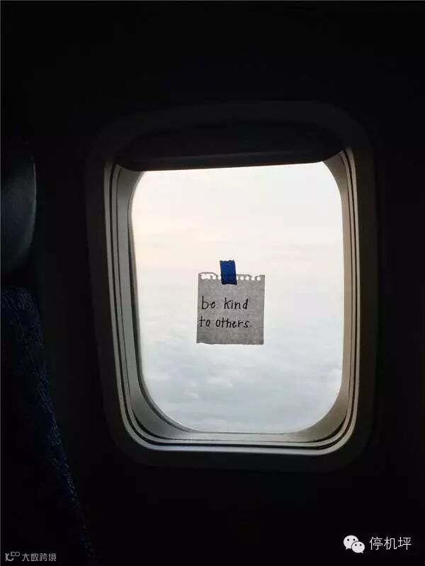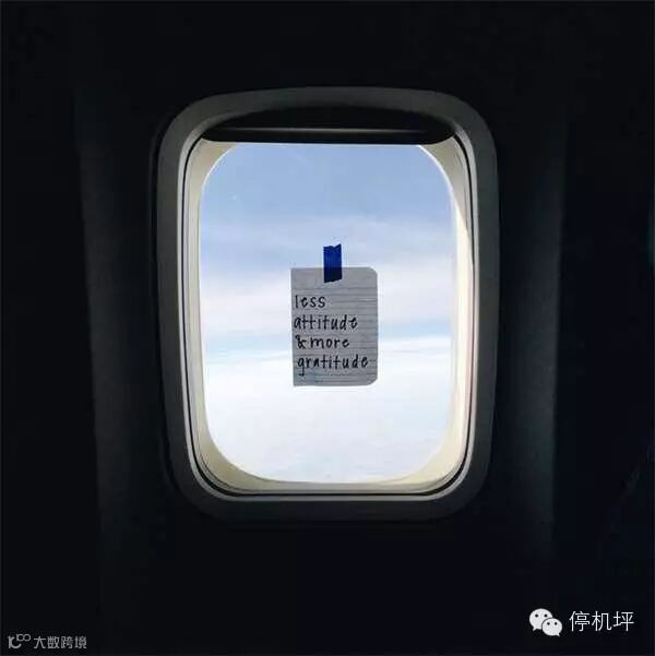 喜欢在工作之余在飞机舷窗上贴上励志的小纸条