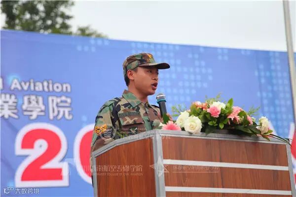 学院2015级空港学院新生胡琳代表全体参训学生发言:所有新生将会保持昂扬的斗志,严格要求自己,实现蜕变。