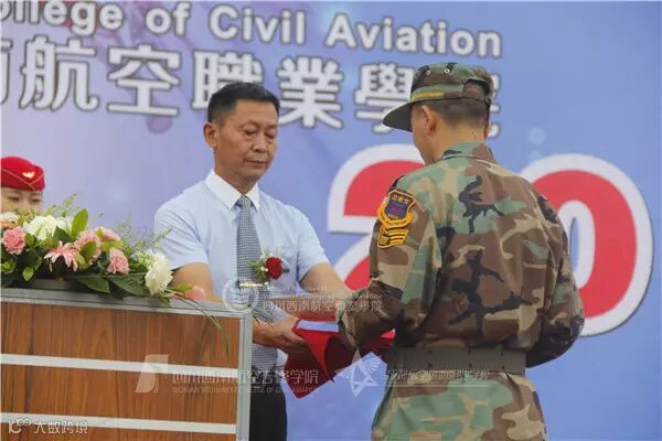 动员大会开始,教育集团副总裁、学院民航反恐研究所所长贺一民教授任命苟平德教官为四川西南航空职业学院2015级军事总教官并授予袖标。