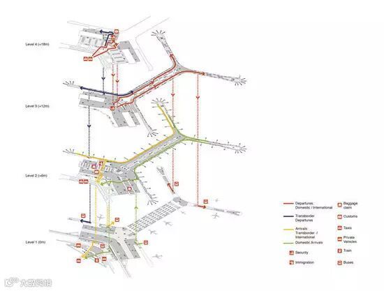 机场的功能设计旨在以最少的投资成本和基础设施获得最高客流量,而不影响空间灵活性和多功能性。减少资本投资获得最高的流势以最小的基础设施,不影响空间的灵活性和多功能性为未来的配置。