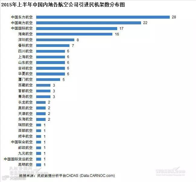 在引进飞机上,国内四大航仍占有较大比例,其中,东方航空在上半年引进28架飞机,居首位。南方航空引进22架,国航引进17架,海南航空引进16架。