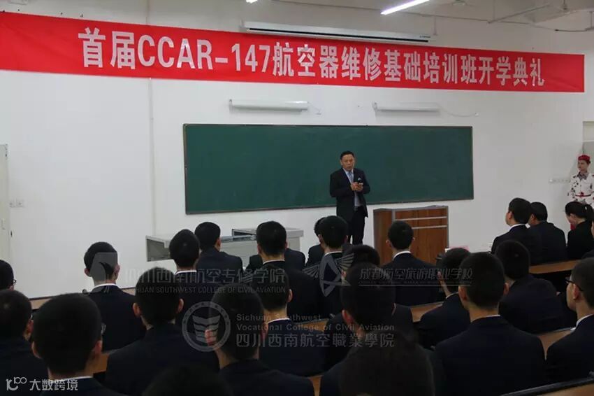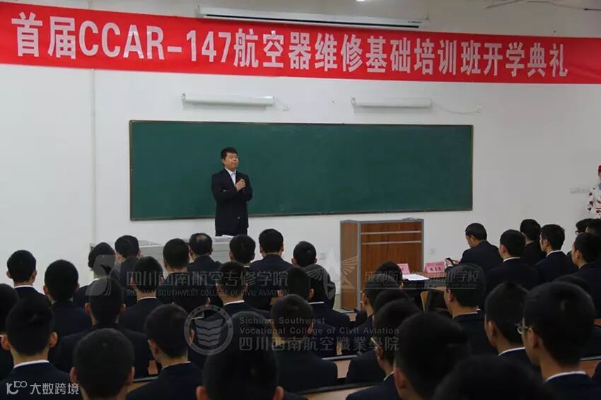在开班仪式上,泛美集团副总裁李中东先生为我们普及了民航业的各种知识,特别是对目前航空机电维修的工作现状作了深入分析。如今民航工作者中,机务三分之一的占比足以显示出其广阔的就业前景。随后,教师代表和学生代表针对课程教授和学习作了发言,保证严格教学,认真学习。最后,四川西南航空专修学院院长曾远志先生要求在场所有老师、同学要“认清形势,珍惜机会”。对首届CCAR-147航空器维修基础班的同学们寄予了厚望。据悉,在开班前,西航划分了专门的CCAR—147部培训场地,添置了大量CCAR—147部实训设备,并且花巨资从美国购买了一架B737—300型飞机,用于CCAR—147部的培训。