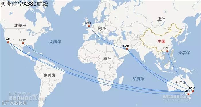 澳航拥有12架A380客机,该公司运营着全球最长的A380航线——悉尼-达拉斯,航程13800公里,飞行时长超过19小时。