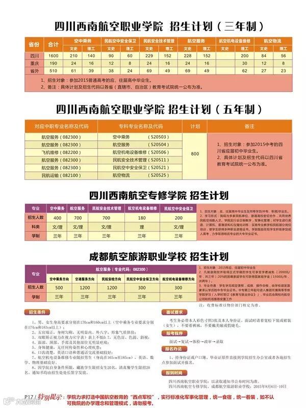 四川西南航空专修学院、成都航空旅游职业学校:2015年8月6日-10日