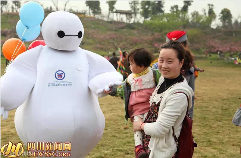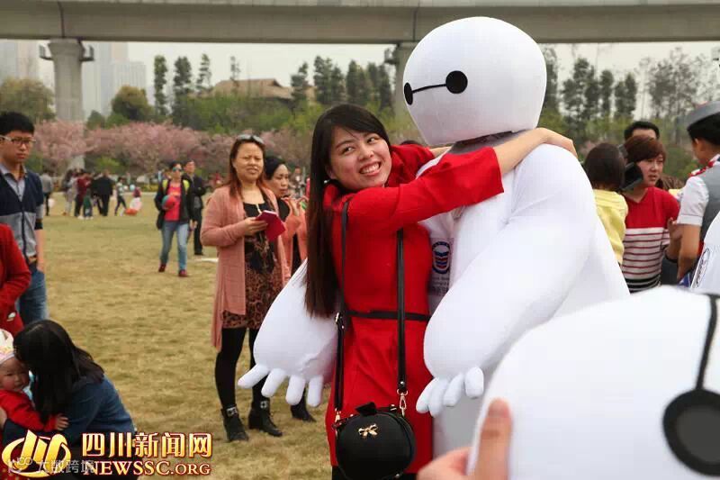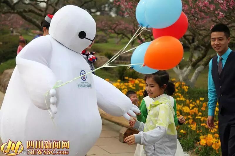 “大白”不愧是“暖神”,他们为现场的小朋友们精心准备了小礼物,气球、糖果……有求必应。除了小孩,“大白”也是少女杀手,每到一处,惊叫声不断,抱抱、戳戳根本停不下来。据了解,本次桃花节上共有5只“大白”,全部都由四川西南航空学院空中乘务专业的准空哥空姐扮演。 “最近电影《超能陆战队》很火,我们想通过扮演影片中的暖心‘大白’,给更多人带来快乐,也增加桃花节欢快的氛围。”其中一位“大白”扮演者告诉记者。