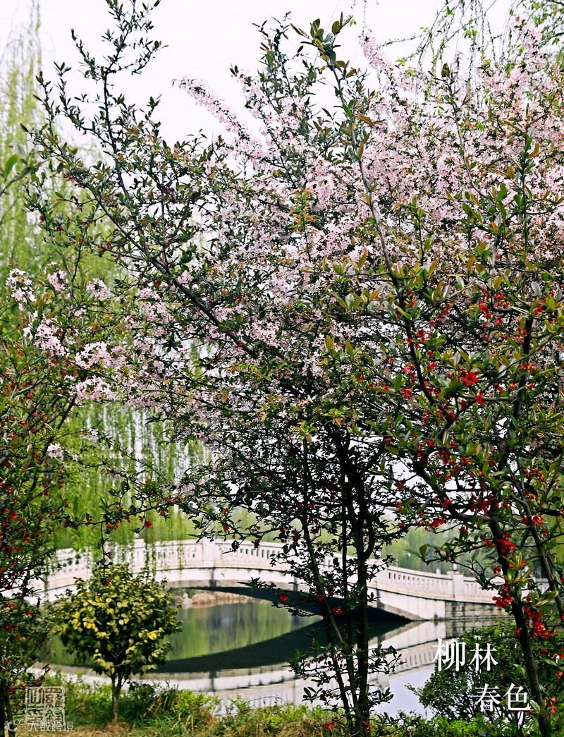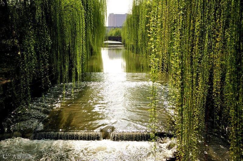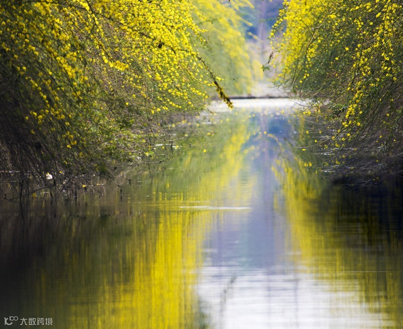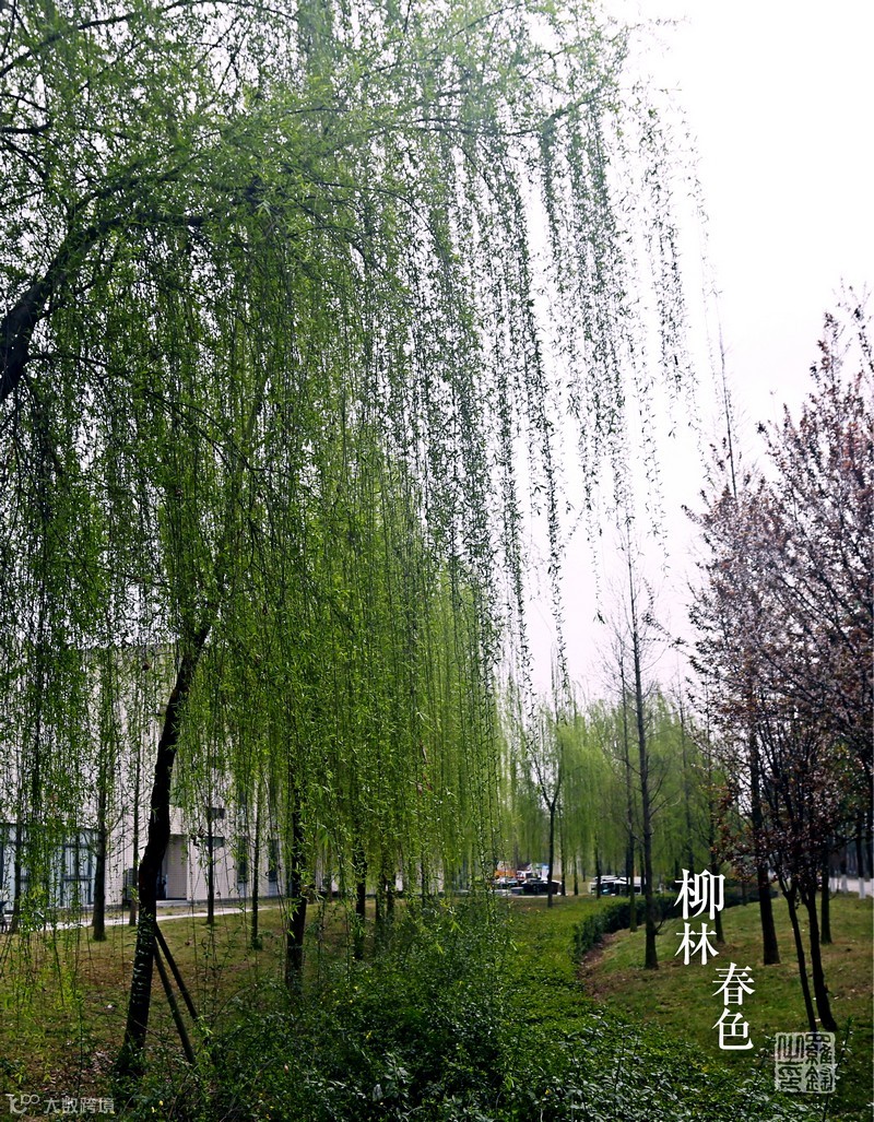 亮点:高大的树木、长长的柳枝、成片的花海,这样的春色,既温柔又大气。