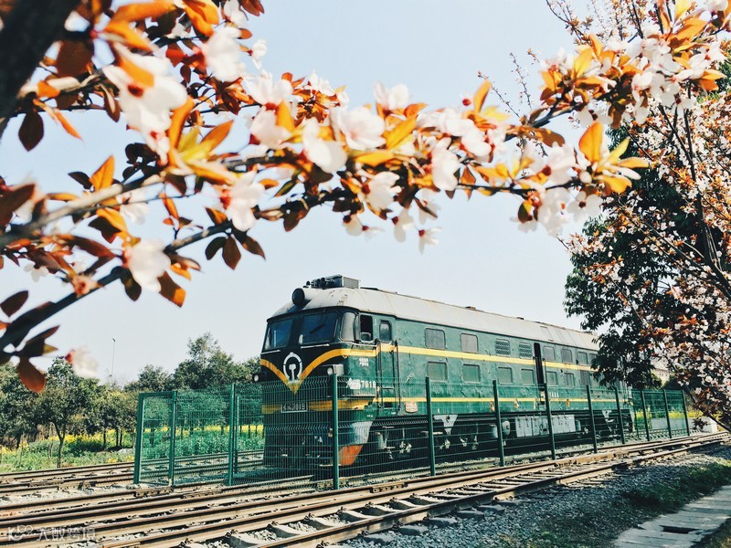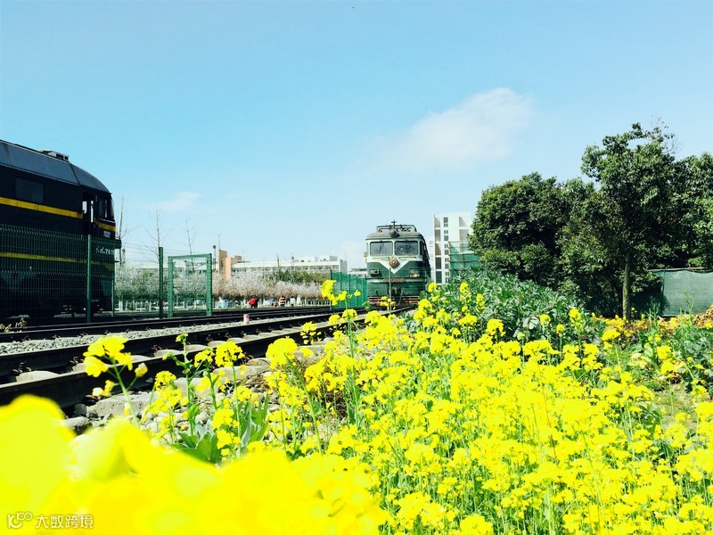 亮点:现成的火车和铁轨在金色的油菜花映衬下,拍照当然是极好的!