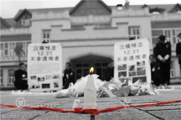 夜幕还未降临,我校师生排列着整齐地队伍,聚集在学院的各个场地,按照中国传统“头七”祭奠的礼仪和风俗,开始对遇难者的祭奠活动。“新年钟声未响,同胞亡魂先行。山川骤然失色,草木为之含情。念我卅六同胞,正值风华之年……”在悲痛的哀乐声中,主持人诵读祭文,随后全场默哀三分钟,向逝者表达悲痛和惋惜之情。