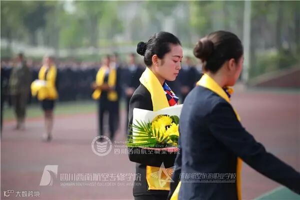 祭祀文吟诵之后,祭祀仪式正式开始。“人间四月天青水莹,感恩戴德祭祖之灵,没有先辈哪有来者,没有先祖哪有儿孙……那些曾经赋予我们荣耀、尊严和财富的先人们被掩埋在历史的尘埃中…… ”四川教育事业部总裁刘良慧先生代表全体师生净手上香,祭祀先祖。全体师生三鞠躬,遥念祖先开辟中华五千年文明之基业。随后,教师代表邓远莉女士代表全体师生向革命先烈敬献黄菊花,全体师生三鞠躬,缅怀先烈为捍卫民族尊严而作出的牺牲。空乘专业学生代表邱鸿、杨绪杰代表全体师生向我们的祖先敬献白菊花,全体师生三鞠躬,感念自己的祖辈勤勤恳恳的一生奉献。
