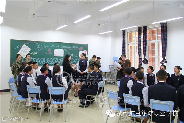 提起ICC,英语是逃不过去的话题。西航ICC的英语课堂采用小班教学模式,一个班最多不超过30名同学。而且,西航的外教都集中在ICC,除了课堂,在办公室、走廊里、校园的各个广场上,学生都能深入的和外教进行语言交流,文化学习。西航ICC13级学生彭芮说:“我当初选择ICC就是看重这里比较浓厚的英语学习氛围,来到ICC以后自己的英语水平也有了很大的提升,现在都可以和外教直接对话。”彭芮的梦想是成为卡特尔航空公司的一名空姐,体验异域风情。