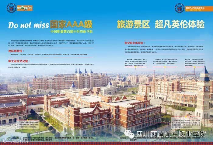 西南航空文化旅游景区位于中国成都金堂大学城,是依托四川西南航空职业学院,凭借“全国最美大学”这一耀眼名片,打造的校园旅游景区。