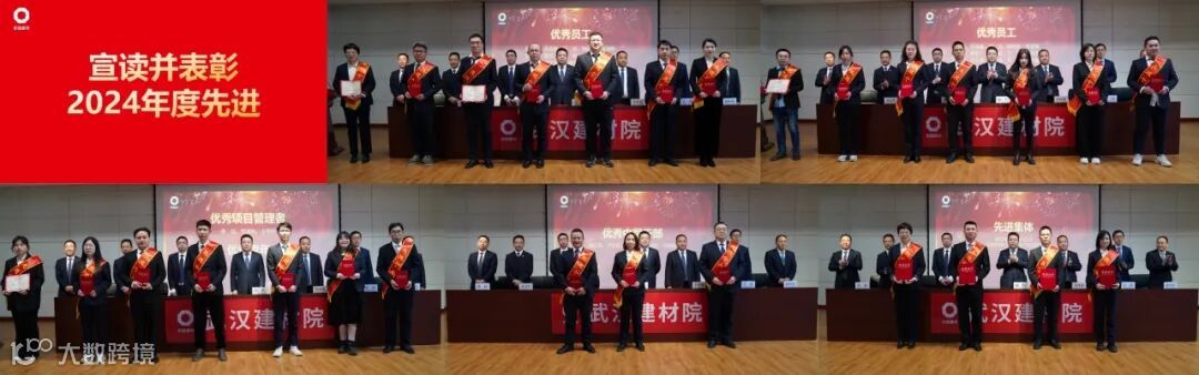 会议表彰了武汉建材院2024年度优秀员工、优秀青年、优秀项目管理者、优秀中层干部和先进集体。