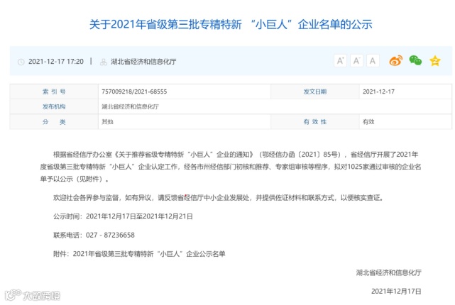 近日,2021年省级专精特新“小巨人”企业名单公布,武汉建筑材料工业设计研究院有限公司(下称武汉建材院)作为典型代表荣登省级专精特新“小巨人”企业名单,成为第三批获得此殊荣的企业。