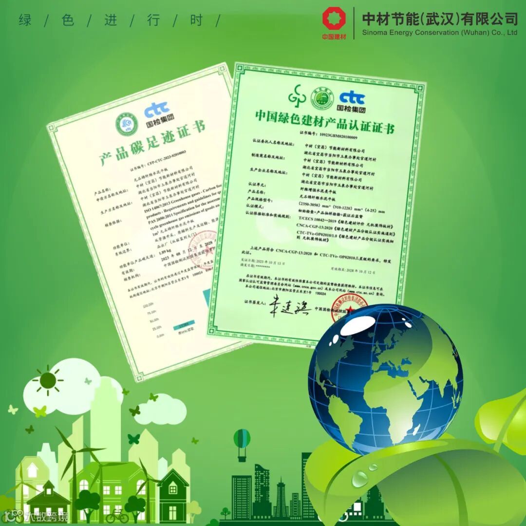 近日,中材潜江“耐火装饰板”“医疗洁净板”及中材宜昌“无石棉硅酸钙板”“纤维水泥平板”先后取得中国绿色建材产品三星认证及产品碳足迹认证,达到国家绿色建材产品的最高标准。此次取得两项证书,是对中材潜江和中材宜昌在绿色环保型新材料研发成果的充分认可,是国家权威机构和行业对中材潜江和中材宜昌产品的高品质、绿色低碳效能的充分肯定,体现了公司始终坚持绿色发展,维护生态环境的理念,秉承“材料创造美好世界”的企业使命,积极探索绿色建材产品的可持续发展路径,将绿色、环保、低碳、节能融入到每一个生产环节,为生态文明的健康发展和国家双碳目标贡献力量。