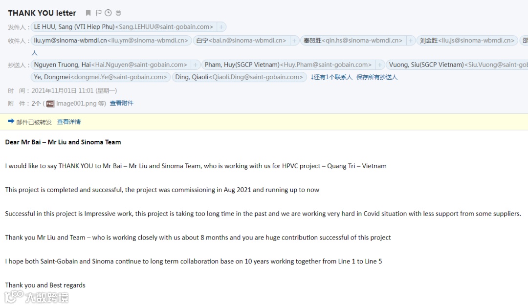 【越南VICO项目感谢信】