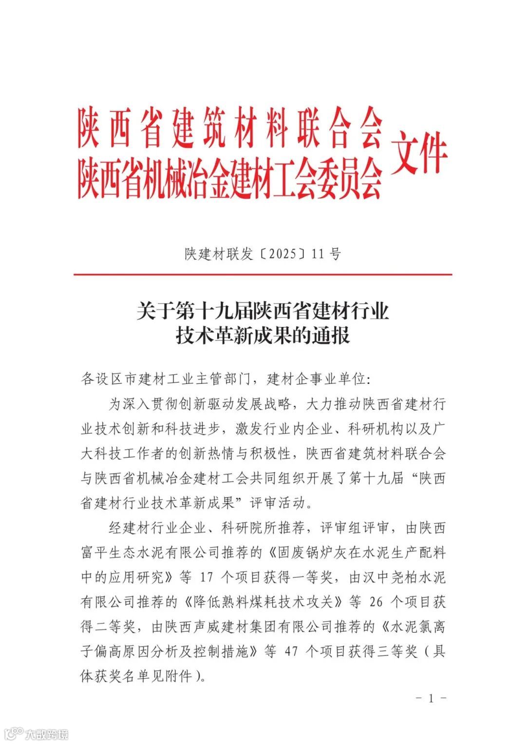 近日,陕西省建筑材料联合会、陕西省机械冶金建材工会委员会联合下发《关于第十九届陕西省建材行业技术革新成果的通报》(陕建材联发〔2025〕11号),我院申报的三项科研成果荣获佳绩!