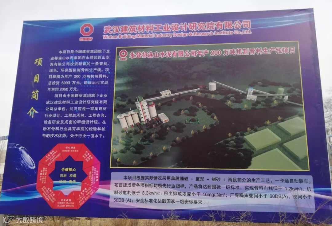 永登公司年产200万吨机制骨料项目是中国建材集团旗下企业祁连山水泥集团在永登祁连山水泥有限公司投资新建的一条智能、绿色、环保性机制骨料生产线。项目规模为年产200万吨机制骨料,总投资6003万元,建成后可实现年利润2062万元。