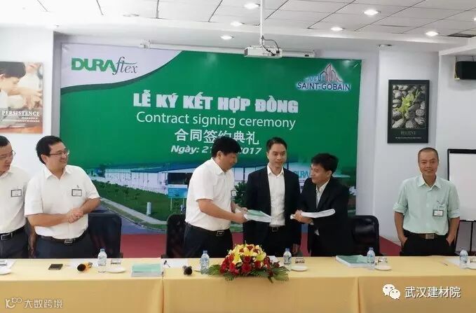 2017年8月21日,武汉建筑材料工业设计研究院有限公司(以下简称“武汉院”)与法国圣戈班集团(Saint Gobain)旗下的越南协富公司在越南胡志明市签署了“年产500万平方米纤维水泥板3#生产线”项目总承包(EP)合同。