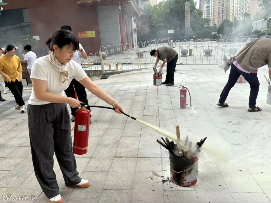 逃生演练结束后,物业消防宣传人员向大家详细讲解了火灾的基本常识,展示干粉灭火器正确的使用方法,在场人员轮流开展灭火器实操演练。