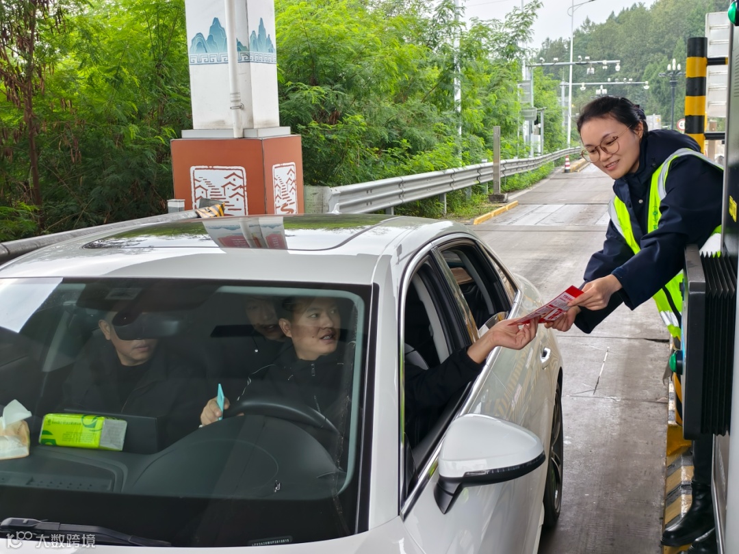 忠万高速西沱收费站员工主动向过往司乘细致讲解交通安全知识,耐心解答关于应急处置、收费政策等方面的疑问,以实际行动守护司乘清明出行路。