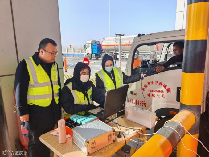 ▲2025年11月28日,武新超(左一)在乌尉高速梨城南收费站指导保通保畅工作。