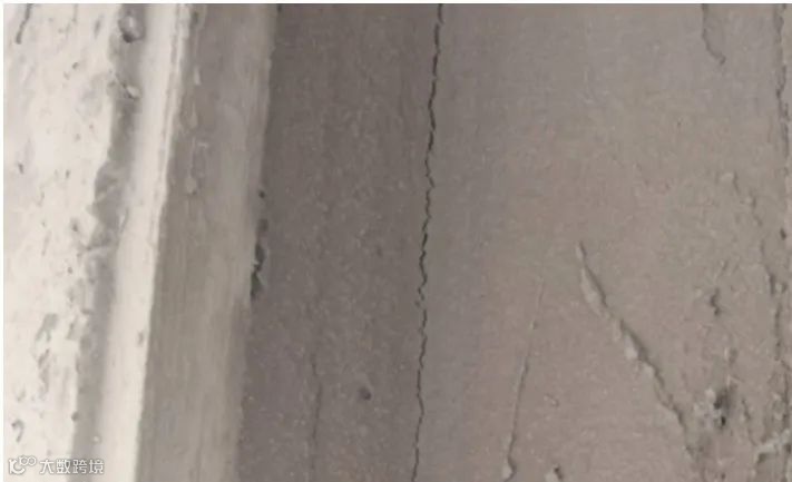 开裂发生在上墙后几分钟,通常会有白发花的现象,裂缝较细小、多且杂乱;