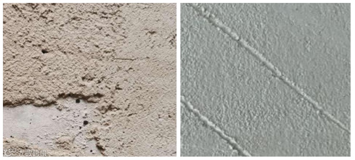 (3)基层密度太大或太小,并含有丰富的空隙,且轻质抹灰砂浆含水率高,不透气,空气被封闭在空隙空腔内。