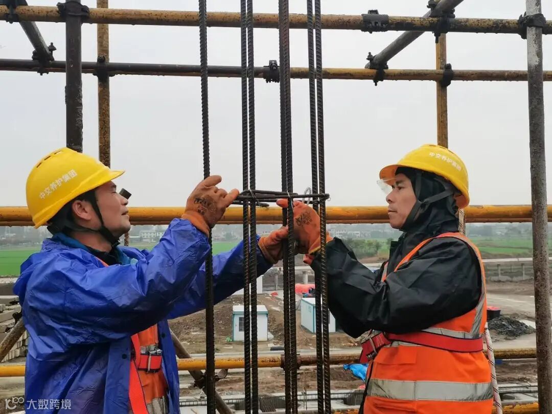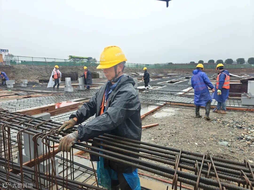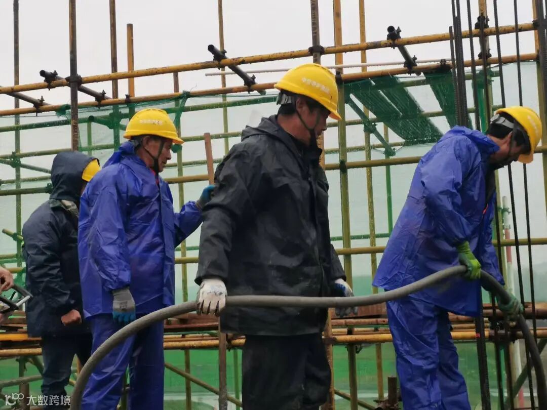 工人们正在2#厂房梁板住混凝土浇筑作业