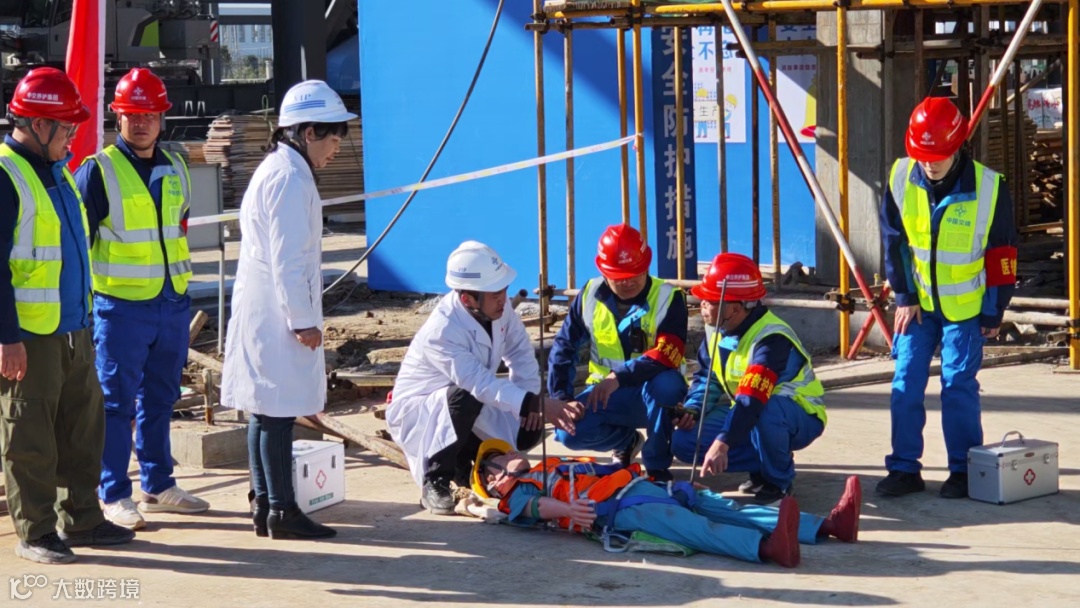 本次演练模拟了在脚手架作业过程中,脚手架发生坍塌导致两名作业人员从高处坠落和压埋受伤的场景。演练开始后,项目部按照专项应急预案,迅速启动各项救援处置工作,现场处置、安全警戒、技术保障、医疗救护、对外联络、善后处置等多支救援小分队各司其职,快而不乱,高效、有序完成了现场研判、紧急救援、伤员转移等关键步骤。