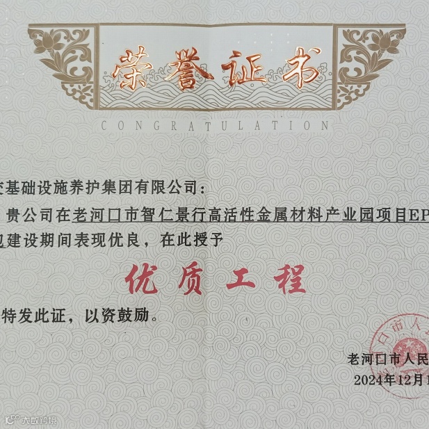 近日,公司老河口智仁景行项目获得老河口市人民政府颁发的2024年度“优质工程”、“安全文明标准化示范工地”、“优秀合作企业”、“优秀项目管理团队”多项荣誉表彰证书。