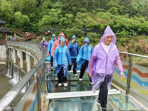 尽管天公不作美,细雨绵绵,但项目青年们热情不减,在雨中登高、挑战玻璃栈道,大家互相鼓励,携手前行,在雨中完成了一次别开生面的登山挑战与团队协作之旅。