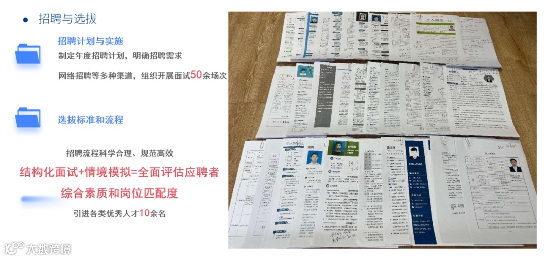 积极开展招聘与选拔,制定年度招聘计划,拓宽招聘渠道,全年组织面试50余场次,为公司引进各类优秀人才10余名;积极拓展培训与发展,组织各类培训活动25场次,培训员工1242余人次,推进人才培训工作提质增效;助力员工个人成长,为员工开拓学历提升、职称评审渠道,全年9名员工得到了晋升,16人获评初中高级职称认定;积极实施考核与薪酬福利管理,制定了科学合理的部门及员工考核制度,刚性运用考核结果,全年共组织短、中期考核3次,考核员工260余人次。定期开展“季度之星”评选,推选40名先进典型,进一步营造了公司员工崇尚榜样、建功立业的奋斗进取氛围。