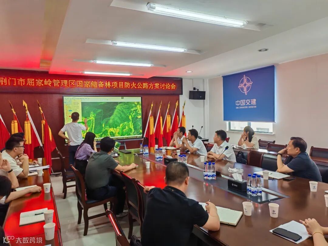 7月1日,荆门市屈家岭管理区党工委副书记徐国玉一行到荆门项目组织召开森林防火公路设计方案二次工作推进会。