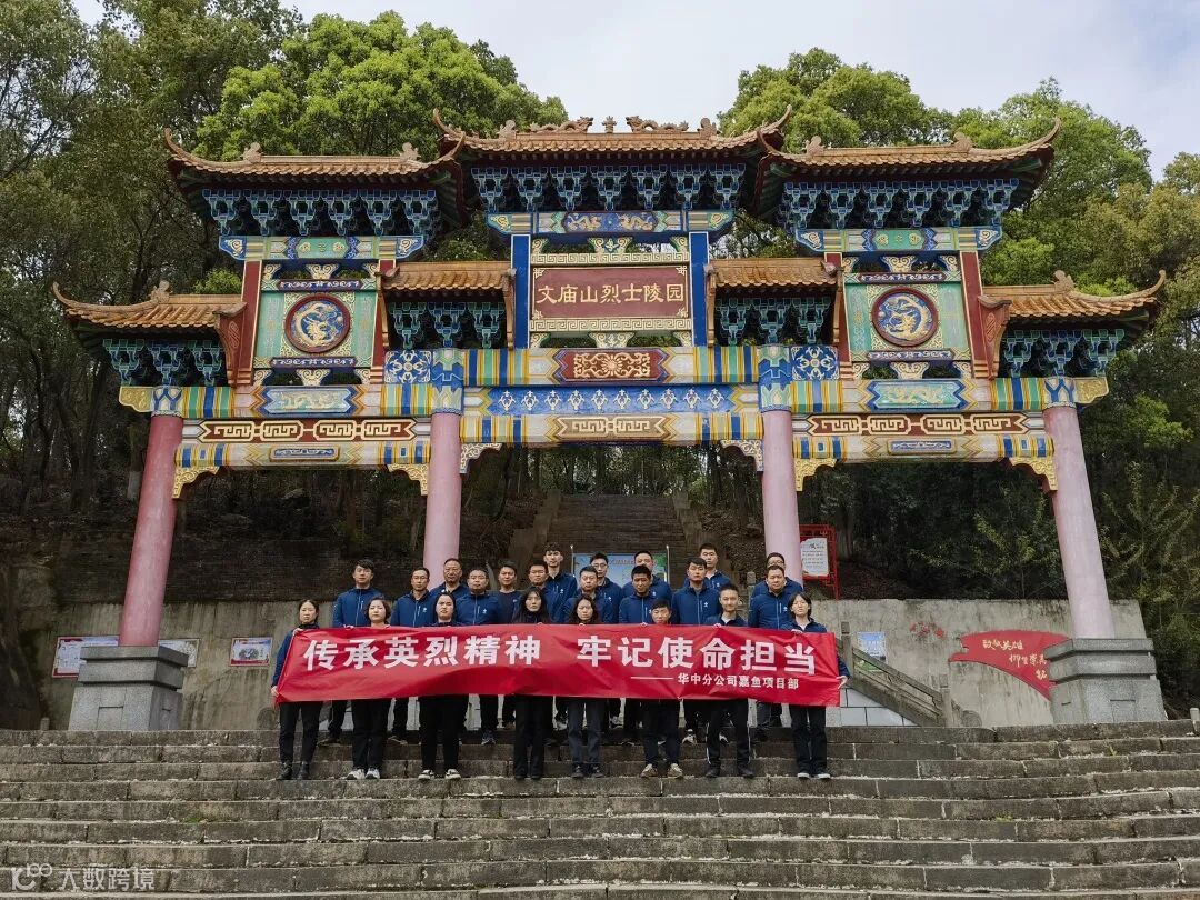在嘉鱼文庙山烈士陵园,全体人员满怀敬仰之情,沉痛悼念英雄先烈。项目常务副经理寇昭向烈士敬献花篮并整理挽联,全体员工敬献鲜花,表达深切的缅怀和崇高的敬意。