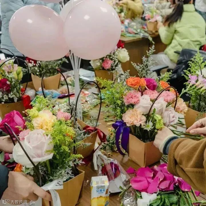 公司男神代表为女神们献上爱心玫瑰