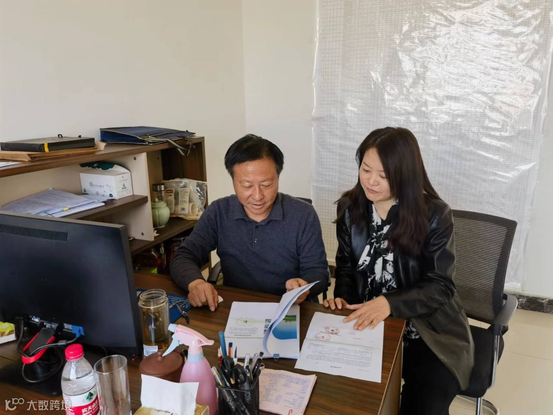 图为:邓育红和枣琚项目指挥部领导沟通工作