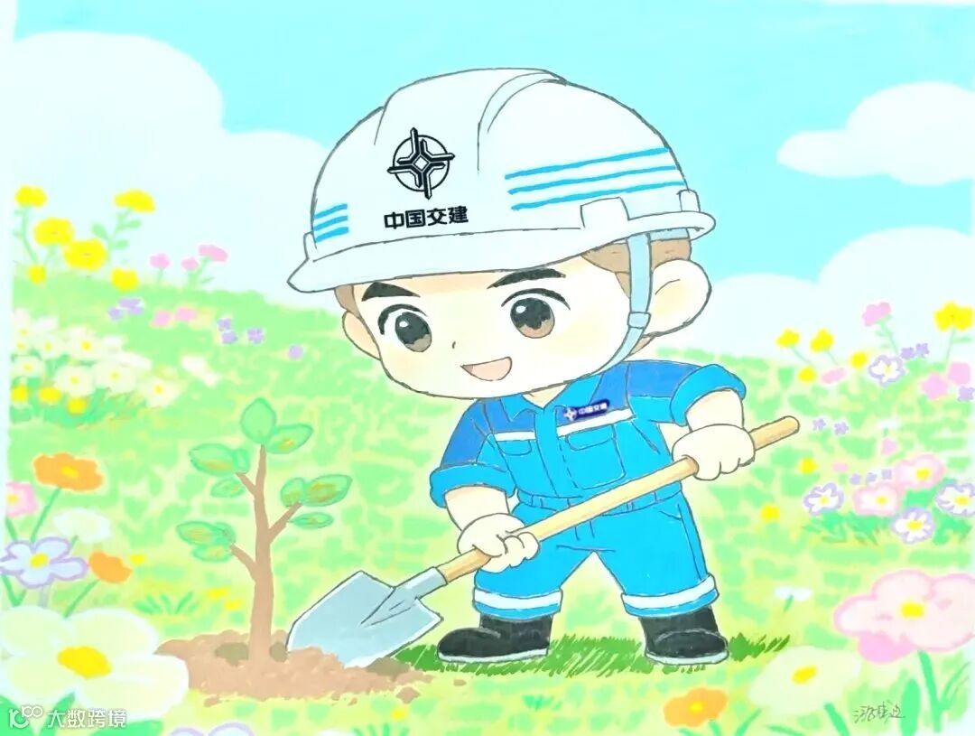 作品介绍:以童趣画风呈现中交员工植树护绿场景既彰显建设者担当,又传递 “植绿护绿、与自然共生” 理念,寓意耕耘孕育希望。