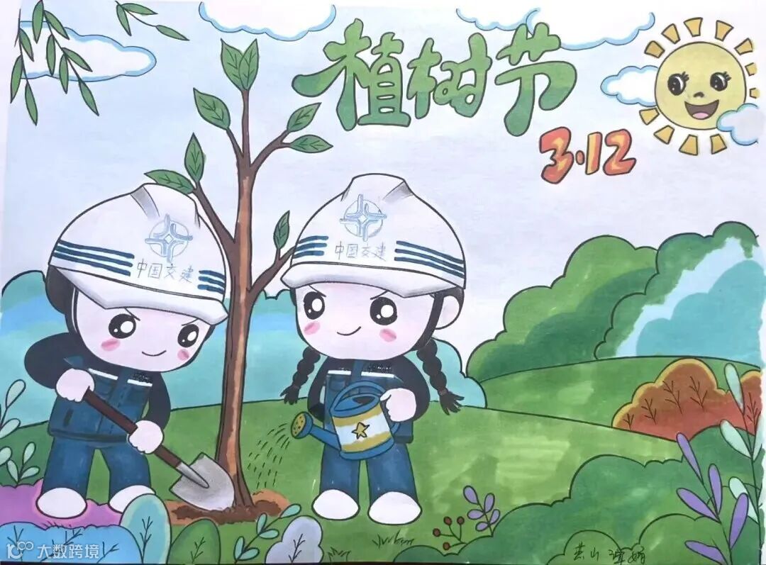 作品介绍:以植树节为主题,用童趣化的艺术语言,展现中国交建员工积极参与植树护绿的生动画面。