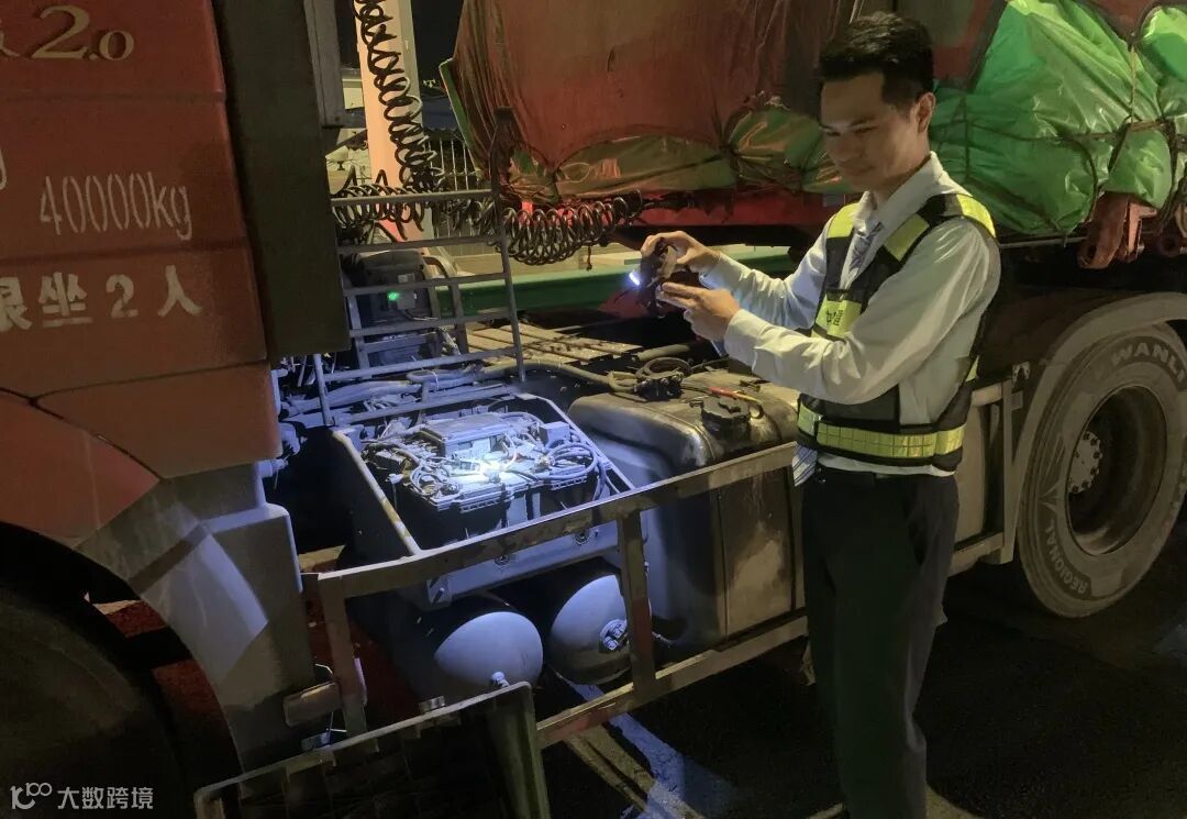 近日19时许,广西总部贵隆高速贵港北收费站当班收费班长刘贵军开展例行巡查时,发现一辆六轴大货车打着双闪,滞留在地磅旁未启动,当即判断司机遇困并上前查看。