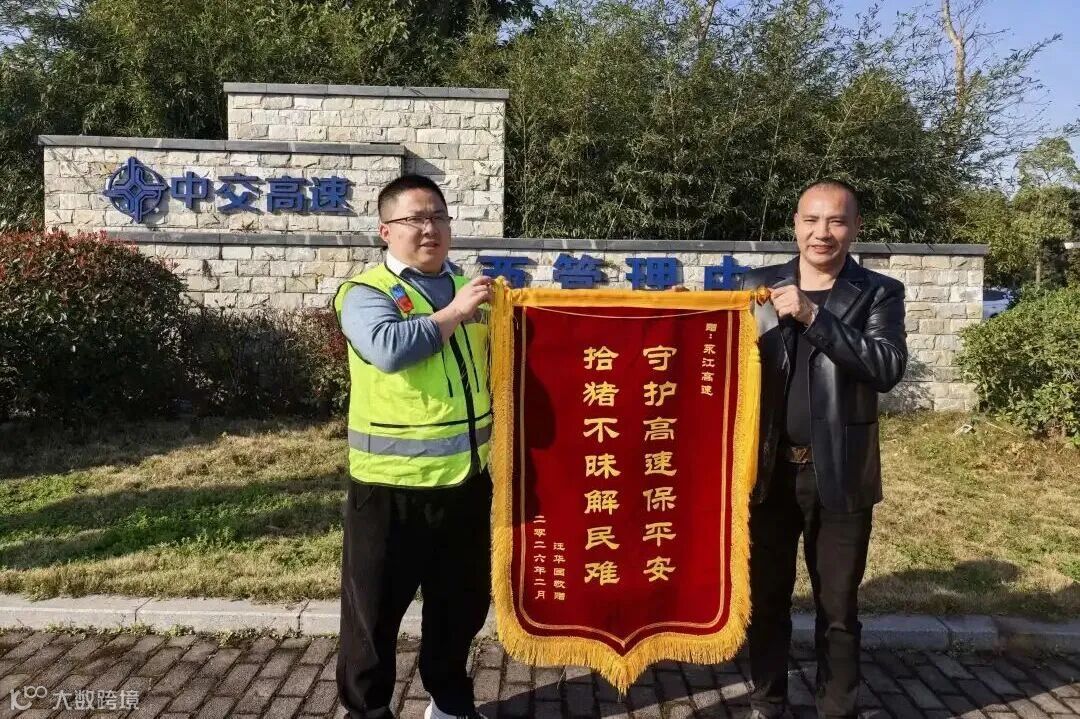 看到生猪安然无恙,汪先生激动地连连道谢,并专程送来锦旗。“太感谢你们了!这头猪对我太重要了,真是帮了大忙!”