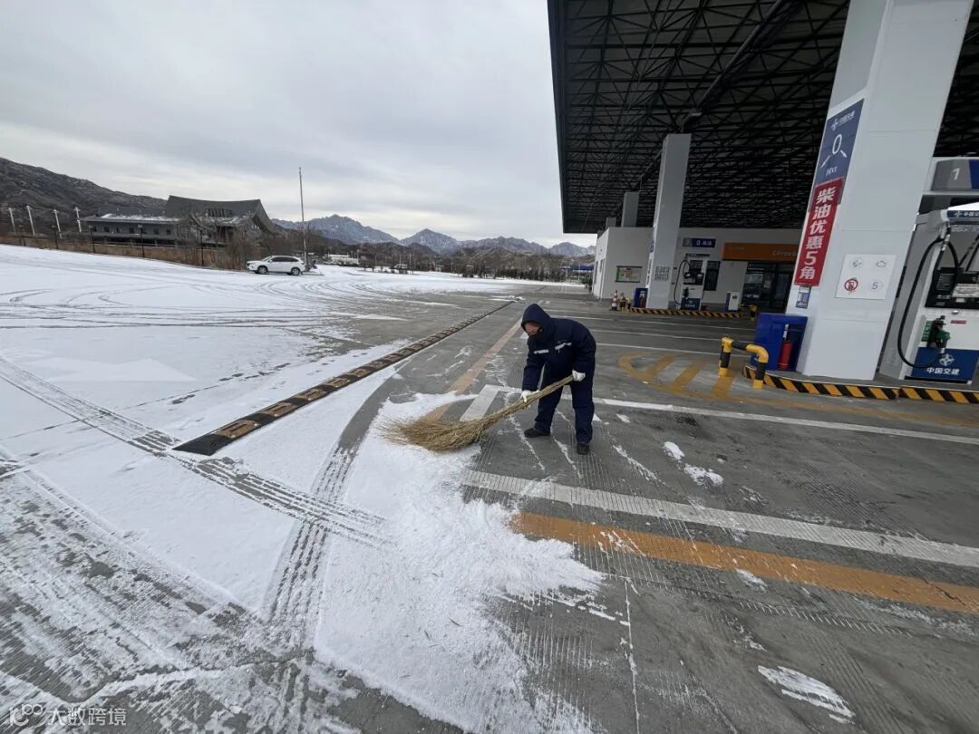“龙腾北方”白石山综合能源站有序开展罩棚下积雪清扫、主干道积雪清运、角落积雪清理及结冰路段处置工作。全员坚守岗位、高效推进,确保无清扫盲区、无安全隐患,筑牢安全防线。